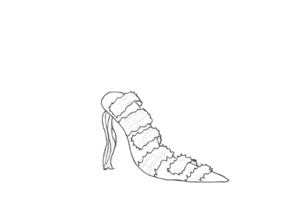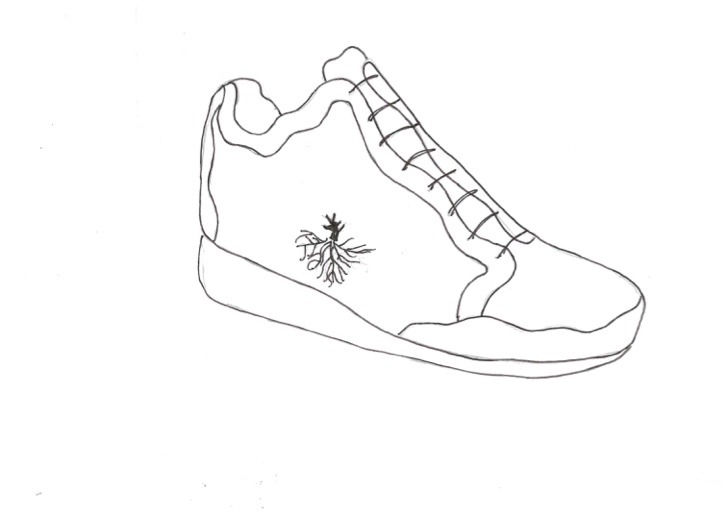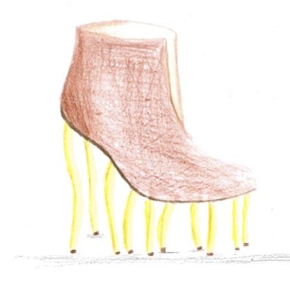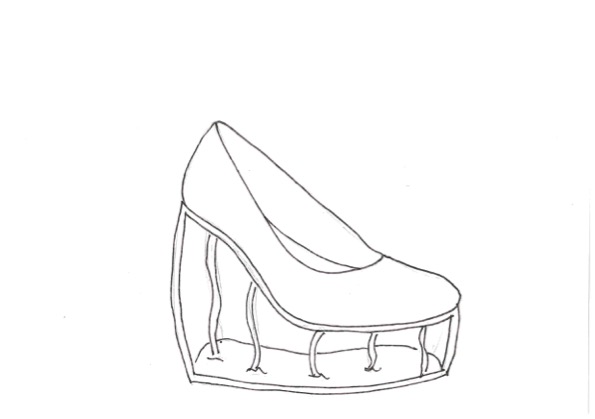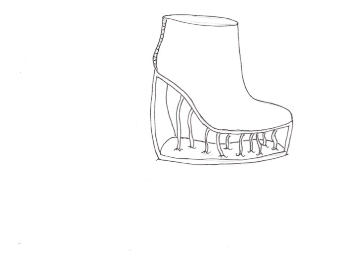De eerder beschreven gedachtegang heb ik in dit paar zo letterlijk mogelijk vormgegeven. Vanuit de zool 'groeien' de wortels de grond in. Met een hakhoogte van 18 cm toren je boven iedereen uit, wat een groots gevoel geeft en bij kan dragen aan je zelfvertrouwen.