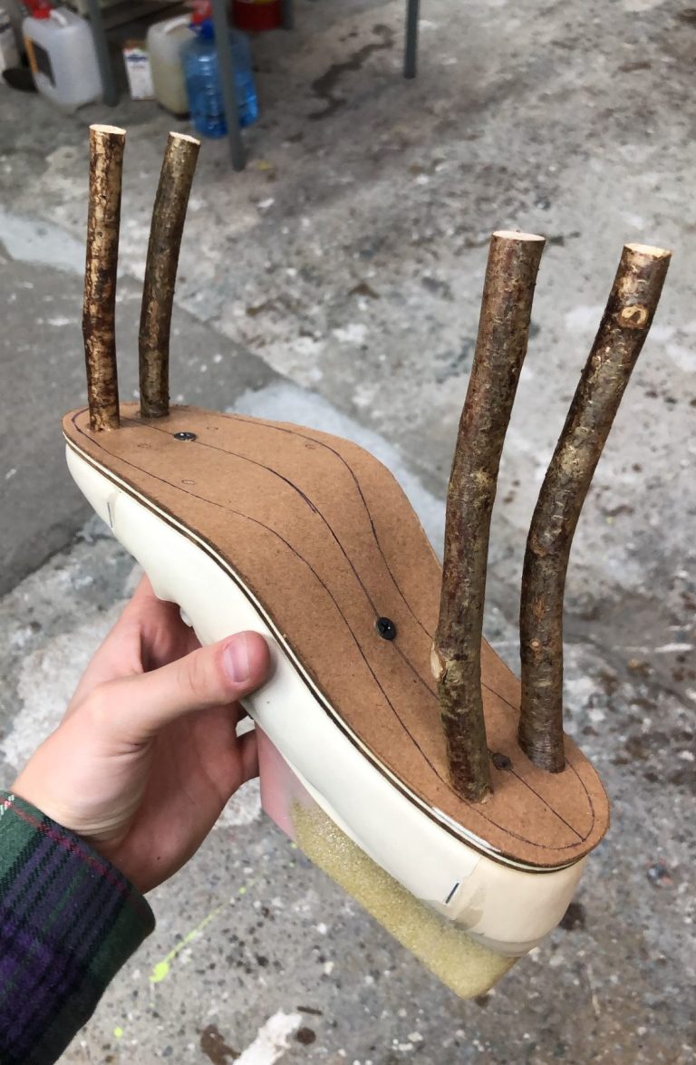 Om ervoor te zorgen dat de schoenen beloopbaar zouden zijn, moesten de stokken zo geplaatst worden dat de voet overal ondersteund zou worden.