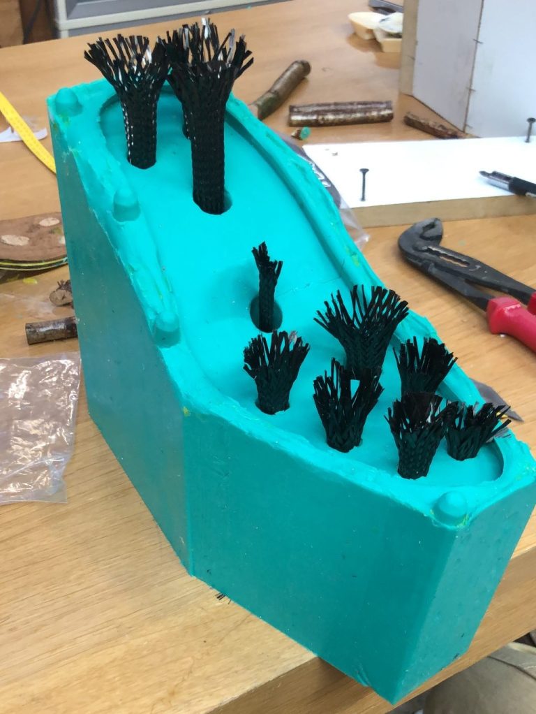 Hierna werd er siliconenrubber in de bak gedaan. Nadat de siliconen uitgehard waren, werd het orgineel verwijderd en kon ik het daadwerkelijke onderwerk gaan maken.