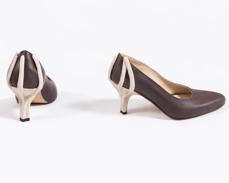 Na het afronden van deel 1 t/m 3 van de collectie kreeg ik de kans om deze te exposeren bij 'Masterly, The Dutch in Milano' tijdens de Milaan design-week. Daartegenover stond wel dat er nog een paar bij moest komen wat minder 'heftig' zou zijn. Dus zo ontstond een minimalistische damespump. De terugkerende boomwortels groeien om de hak heen en grijpen als het waren de hiel.