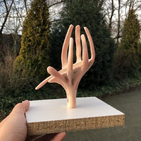 Na het uitharden van de hars kon het onderwerk uit de mal gehaald worden.