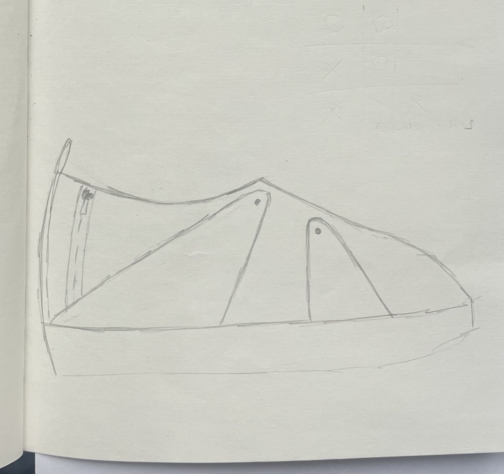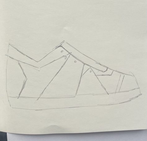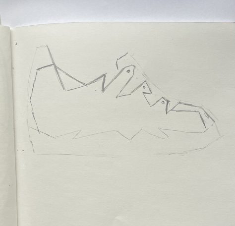 Zo begon ik direct met schetsen. Tot ik uitkwam bij rechte lijnen die doorlopen van links naar rechts. Je krijgt hierdoor een paar wat van elkaar verschilt, maar waar je nog steeds van ziet dat ze bij elkaar horen.